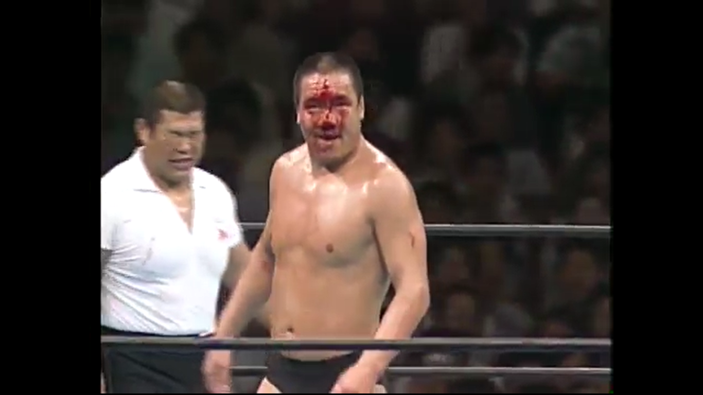 Not the classic like Maeda vs Fujinami is but it’s a masterful piece of work with the two putting on a right clinic. Not as varied as their match earlier in the year but it was just as compelling if not more. Fujiwara was a rabid dog, persistently fighting for the sleeper hold and Inoki had to keep defending it at all costs. Inoki offered a terrific defensive performance with a lot of his high spots consisting of reversals and counters, only for Fujiwara to flip him on his backside and snag the neck once again. The match turned around when Inoki threw Fujiwara and himself over the top rope where Fujiwara ended up with a bloody face, landing hard on the floor face first presumably. But still Fujiwara went for the sleeper. What a mad man. But nonetheless, it allowed a real target for Inoki to exploit and Inoki made good use of it with his punches. The peak of the match was Inoki hitting an Enziguri, his ultimate comeback move, and Fujiwara not selling it and dodging the next one as well. Fujiwara is such a beast, how do people not love this man? The finish came off rather well with Inoki hitting one german suplex, taking his only real shot at scoring a pin and succeeding by the skin of his teeth. A terrific performance by both wrestlers. ****1/4